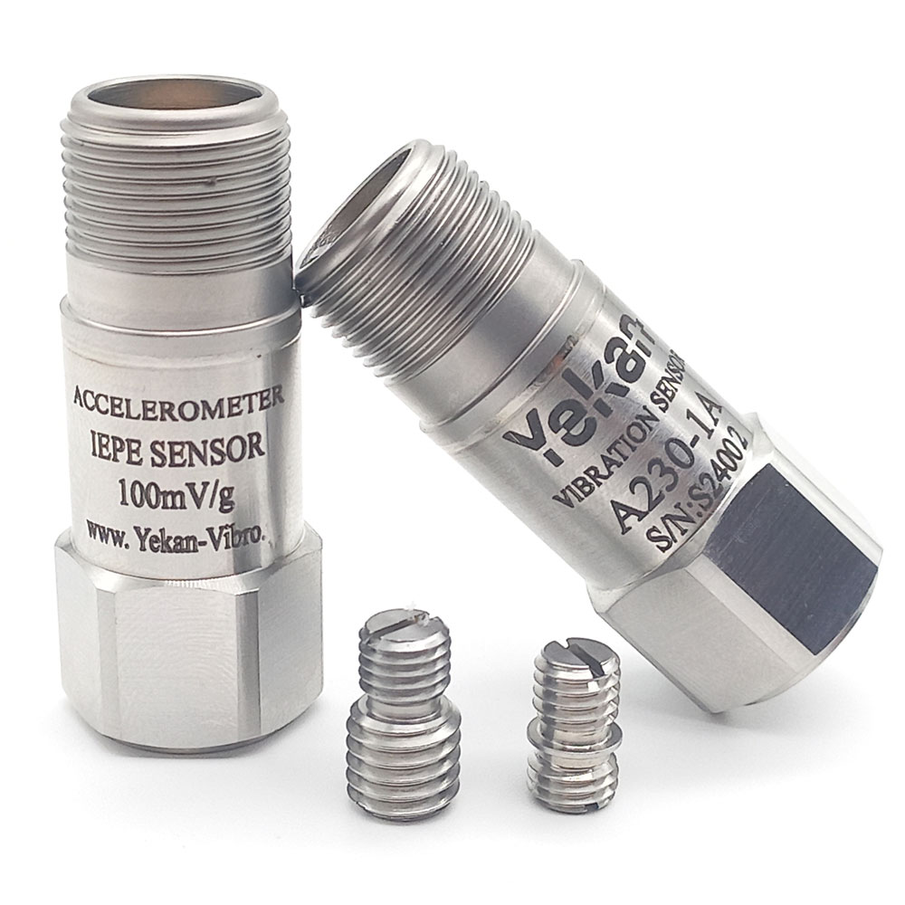 The A230-1A accelerometer sensor, manufactured by Yekan Company, is a high-quality contact-type vibration sensor designed for precise vibration measurement in industrial applications. This compact sensor operates within a wide temperature range of –40°C to +120°C, making it suitable for harsh environments. Due to its compact size, proper consideration of ambient temperature conditions is recommended during installation.